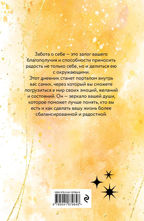 Благодаря записям, рефлексии и упражнениям вы пройдете путь познания себя и личностного роста. Убедитесь, что забота о себе — это не эгоизм, а залог вашего благополучия и способности приносить радость не только себе, но и делиться ею с окружающими.