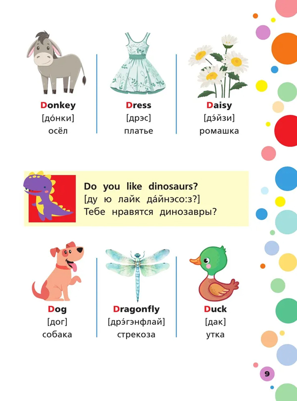 В этом издании собраны важнейшие английские слова и выражения, необходимые начинающим учить язык. Все слова и фразы распределены по темам, что облегчает их запоминание и использование. Яркие иллюстрации и увлекательные упражнения превращают обучение в интересное занятие. Диалоги и практические задания помогут детям научиться применять новые слова в реальных ситуациях, делая их уверенными пользователями английского языка.