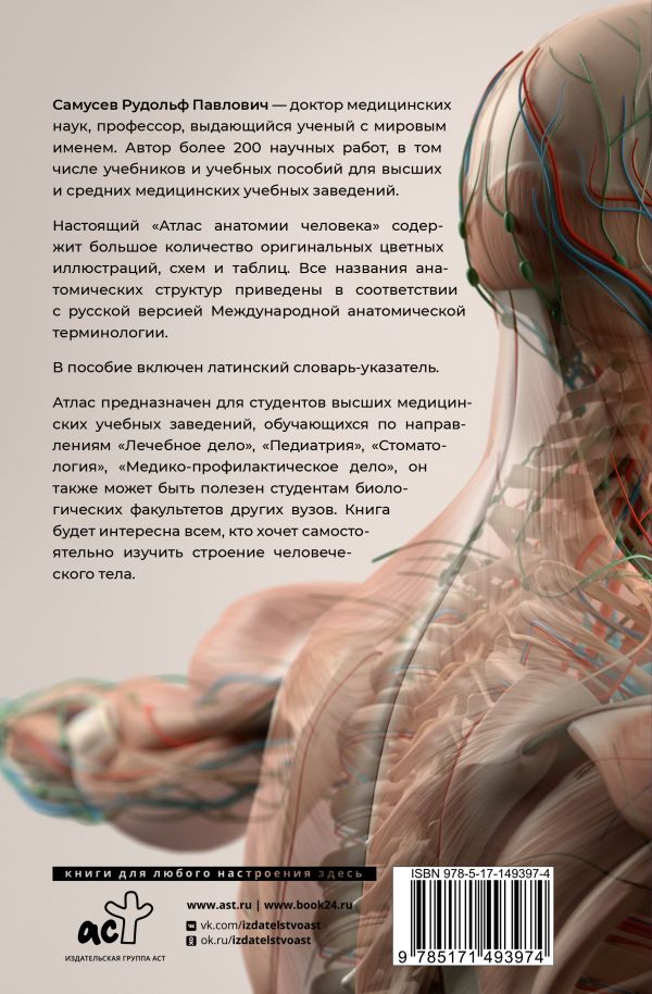 Атлас предназначен для студентов высших медицинских учебных заведений, обучающихся по направлениям «Лечебное дело», «Педиатрия», «Стоматология», «Медико‑профилактическое дело», он также может быть полезен студентам биологических факультетов других вузов. Книга будет интересна всем, кто хочет самостоятельно изучить строение человеческого тела.