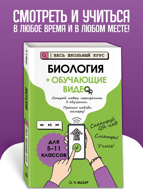 В пособии развёрнутый поясняющий материал по темам, особо актуальным для сдачи экзаменов, ОГЭ и ЕГЭ 2026, представлен в формате коротких видеороликов. Такой справочник для учеников 5, 6, 7, 8, 9, 10, 11 классов сделает процесс обучения живым и запоминающимся! Попробуй новый подход к обучению: смотри и учись в любое время и в любом месте! Также книга будет полезна для занятий родителей с детьми.