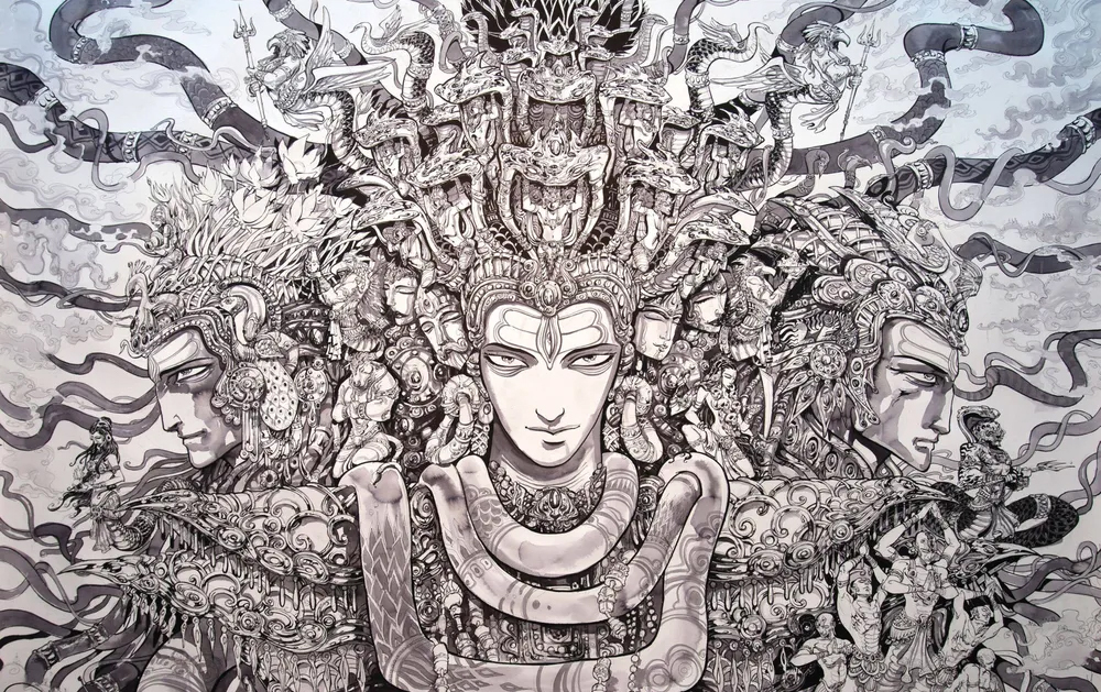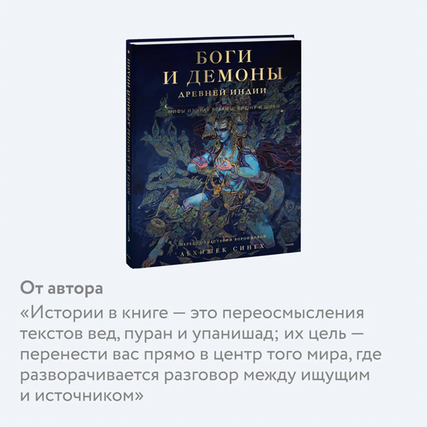 Захватывающие мифы из края Брахмы, Вишну и Шивы с авторскими иллюстрациями Абхишека Сингха станут вашим компасом на пути к пониманию ведических текстов.