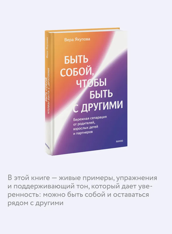 Практичная и бережная книга кандидата психологических наук Веры Якуповой поможет отделить себя от родителей, детей, партнеров и при этом сохранить с ними близость. Вы определите свою личную грань между зависимостью от человека и его мнения и полным отказом от его участия в вашей жизни. Научитесь быть самодостаточным и при этом сохранять крепкие отношения.