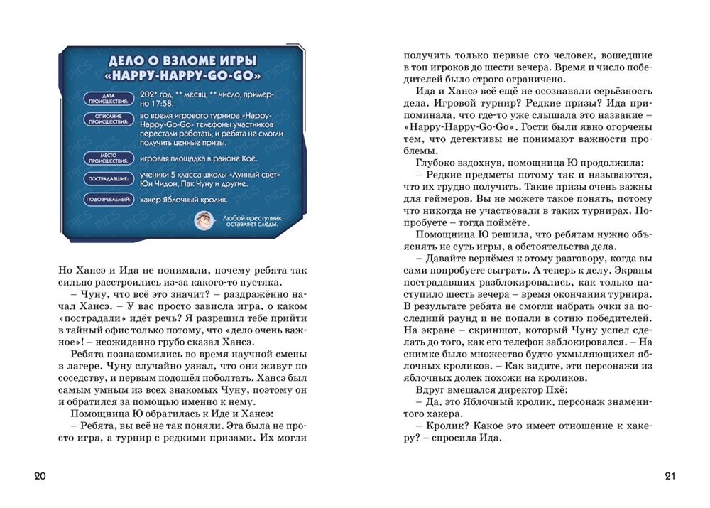 Команду 221 ждет первое официальное дело! Кто-то взломал игру «Happy-happy-go-go» и лишил игроков заслуженных ценных призов. Ида и её друг Хансэ берутся за расследование! Под подозрение сразу попадает таинственный компьютерный гений Яблочный кролик. Но Ида уверена в его невиновности. Тем более что он сам обратился за помощью к сыщице. Кто же подставил Яблочного кролика? И как выследить неуловимого киберпреступника?