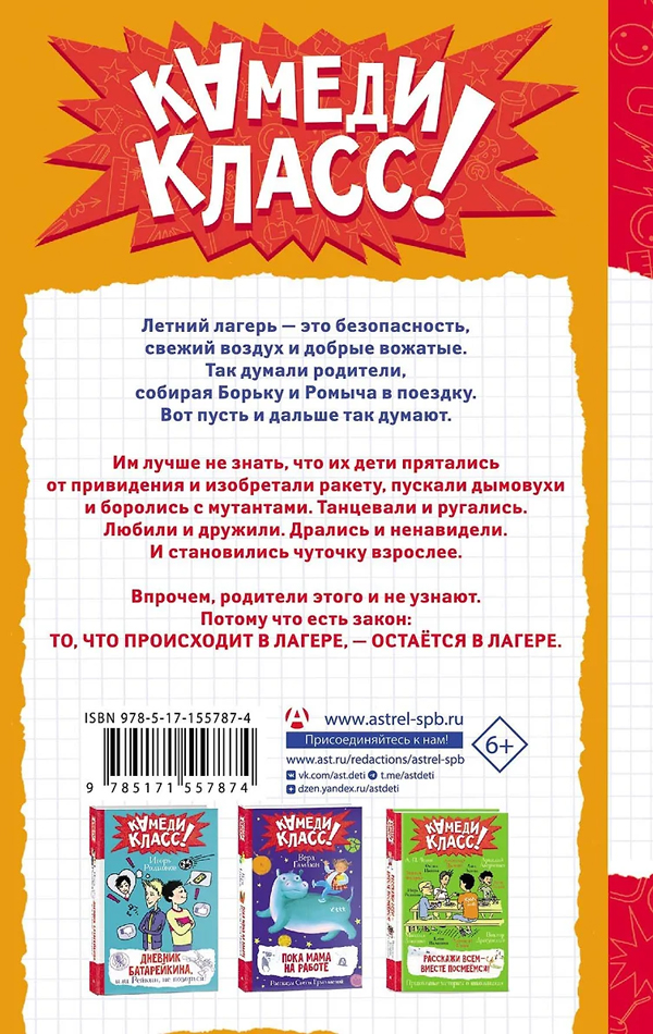 Впрочем, родители этого и не узнают. Потому что есть закон: ТО, ЧТО ПРОИСХОДИТ В ЛАГЕРЕ – ОСТАЁТСЯ В ЛАГЕРЕ.