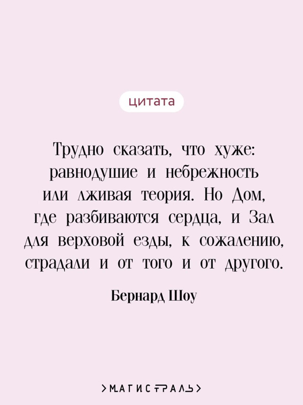 Шоу остро поднимает проблемы духовного кризиса и лицемерия в обществе в «Дом, где разбиваются сердца»; вопросов нравственности, женской независимости и социальной несправедливости в «Профессия миссис Уоррен»; классового неравенства и социальных предрассудков в «Пигмалионе»; власти и нравственного роста личности через историческую призму в «Цезарь и Клеопатра». В каждой пьесе автор через острый юмор и парадоксы побуждает к переосмыслению установок и поиску подлинных человеческих ценностей.