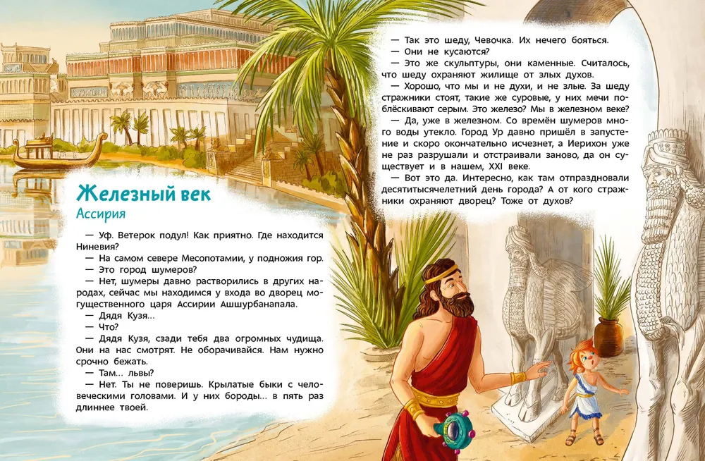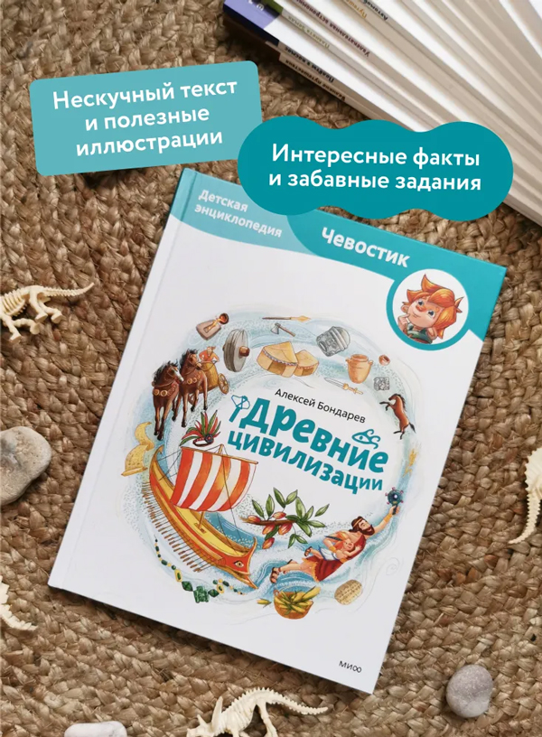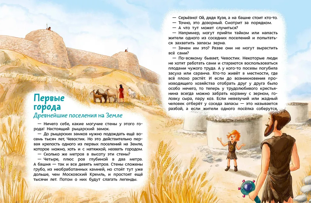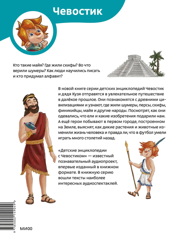 В новой книге Чевостика и дядю Кузю ждет интереснейшее путешествие, на этот раз в мир древности. Они узнают, какой город на Земле был построен первым, как колесо перевернуло мир, как дикие растения и животные помогли улучшить жизнь человека. Путешественники своими глазами увидят, где жили шумеры, персы, скифы, финикийцы, майя и другие народы, как одевались, чем питались и как проводили досуг. Присоединяйтесь к любимым героям, вас ждут полезные приключения!