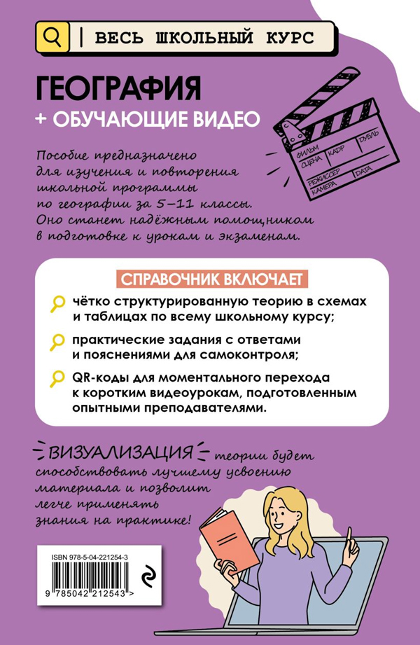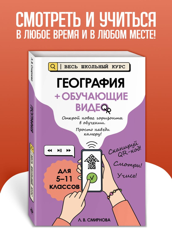 В пособии развёрнутый поясняющий материал по темам, особо актуальным для сдачи экзаменов, ОГЭ и ЕГЭ 2026, представлен в формате коротких видеороликов. Такой справочник для учеников 5, 6, 7, 8, 9, 10, 11 классов сделает процесс обучения живым и запоминающимся! Попробуй новый подход к обучению: смотри и учись в любое время и в любом месте! Также книжка будет полезна для занятий родителей с детьми.