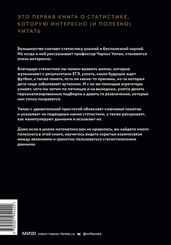 Чарльз Уилан рассказывает о том, как статистика помогает находить ответы на эти и другие вопросы, и делает это с юмором и блестящими наглядными примерами.