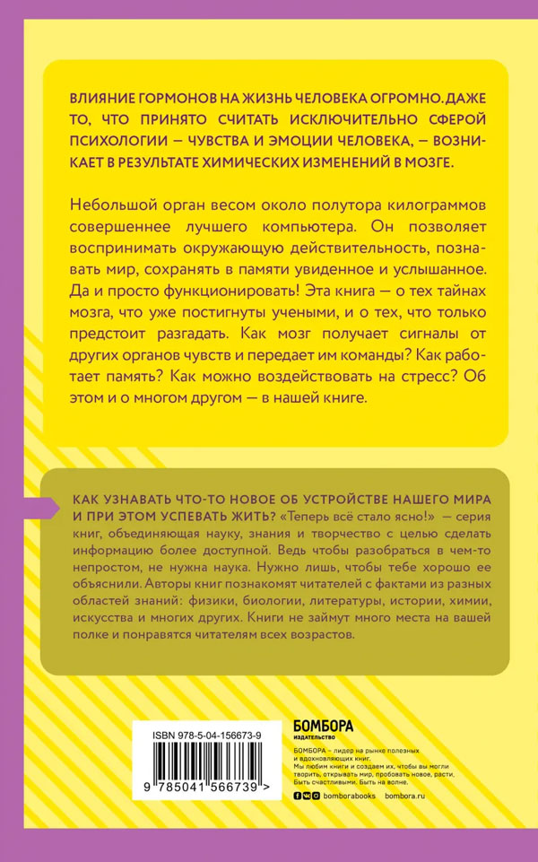 Эта книга — о тех тайнах мозга, что уже постигнуты учеными, и о тех, что только предстоит разгадать. Как мозг получает сигналы от других органов чувств и передает им команды? Как работает память? Как можно воздействовать на стресс? Об этом и о многом другом — в нашей книге.