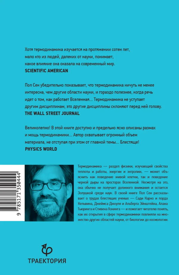 В целом, это книга о людях, об их встречах, дискуссиях, содружествах, поисках. Пол Сен пишет легко и непринужденно, как рассказывал бы увлекательную историю в кругу друзей. Эта книга наполнена оптимизмом и надеждой на прогресс, она показывает, как наша жизнь действительно стала лучше благодаря всем блестящим исследователям, когда-либо работавшим в сфере термодинамики. “Изучение энергии, энтропии, температуры и законов, которым они подчиняются, сыграло огромную роль в величайшем в истории нашего вида улучшении условий жизни людей.”