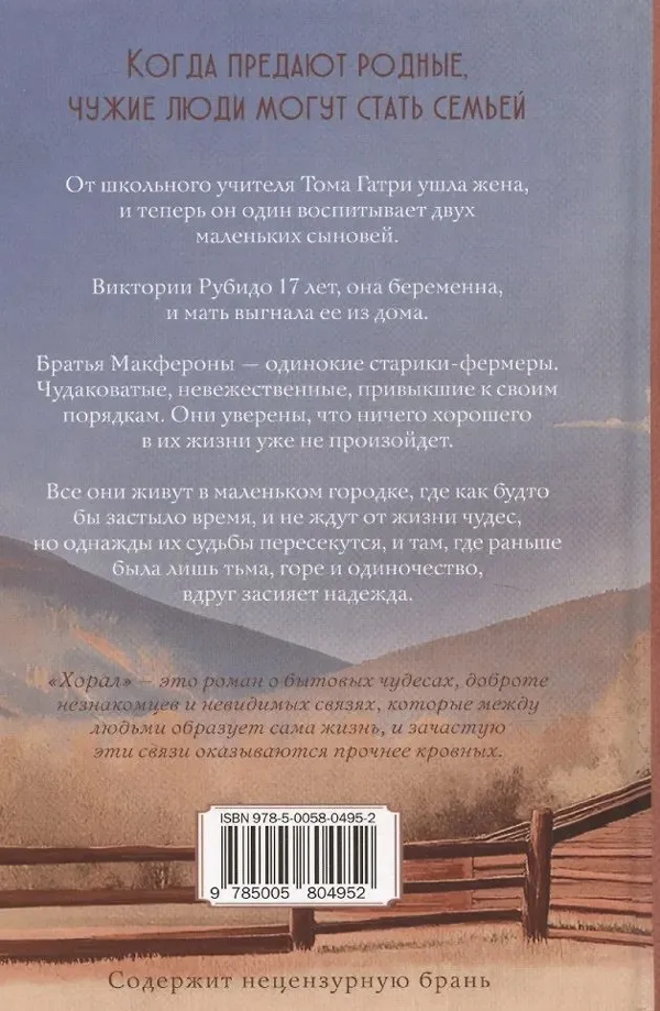 «Хорал» — это роман о бытовых чудесах, доброте незнакомцев и невидимых связях, которые между людьми образует сама жизнь, и зачастую эти связи оказываются прочнее кровных.