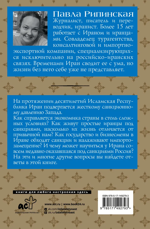 На протяжение десятилетий Исламская Республика Иран подвергается жесткому санкционному давлению Запада. Как справляется экономика страны в столь сложных условиях? Как живут простые иранцы под санкциями, насколько их жизнь отличается от привычной нам? Как государство и бизнесмены в Иране обходят санкции и налаживают импортозамещение? И чему может научиться у Ирана совсем недавно оказавшаяся под санкциями Россия? На эти и многие другие вопросы вы найдете ответы в этой книге.