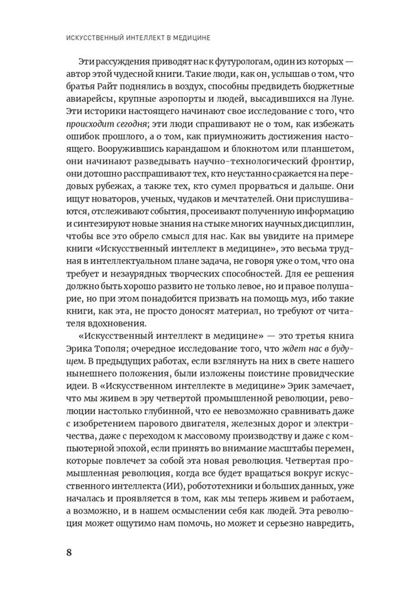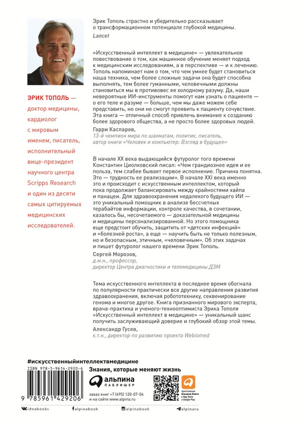 На эти и многие другие важные вопросы подробно и понятно отвечает автор книги Эрик Тополь — врач, ученый, исследователь и всемирно известный эксперт в области применения искусственного интеллекта в медицине.