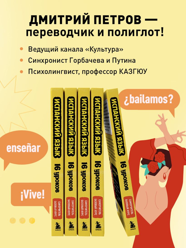 А вы знали, что испанский — второй по распространенности родной язык на земле? Этот самоучитель откроет вам двери к красочному миру испаноговорящих стран. Свободно общайтесь на языке Маркеса и Сервантеса, подпевайте песням Энрике Иглесиаса и Розалии, болтайте с местными на улицах Барселоны... Самоучитель Дмитрия Петрова позволит сделать первый шаг в удивительный яркий мир испаноязычных стран!