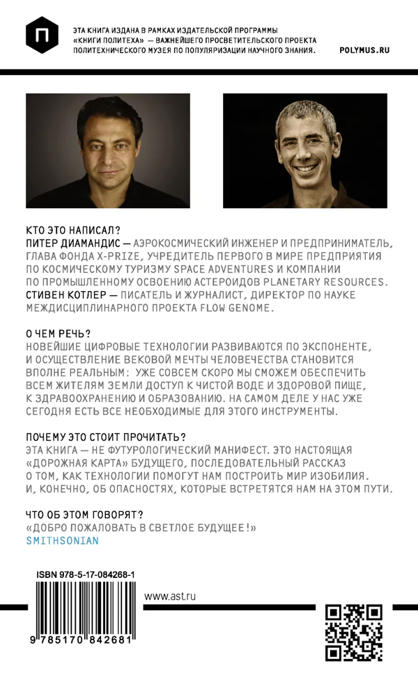 Однако перед вами — не футурологический манифест. Эта книга — настоящая "дорожная карта" будущего, последовательный рассказ о том, как технологии помогут нам построить мир изобилия. И, конечно, об опасностях, которые встретятся нам на этом пути.