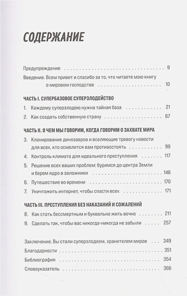 Завоевание мира - это большая работа. У любого суперзлодея есть куча вопросов: как обустроить идеальное место для секретной базы? Как спланировать и реализовать ограбление века? Как управлять погодой и жить вечно? У автора бестселлера "Как изобрести все", популярного писателя Райана Норта есть ответы на все вопросы, волнующие начинающего злодея.