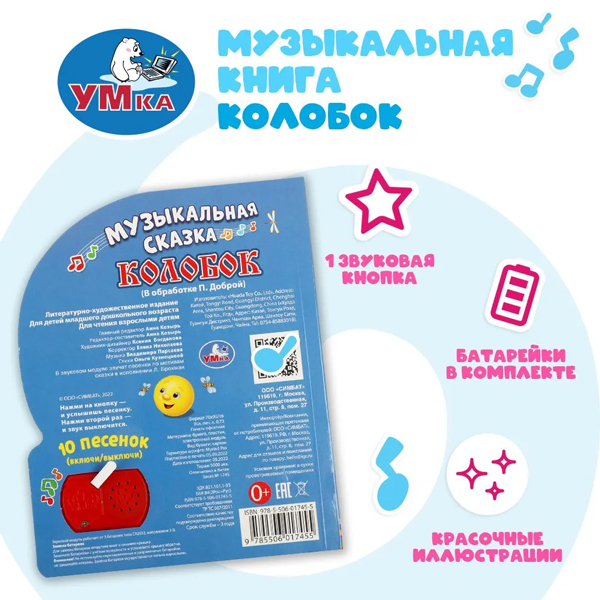 Книга с музыкальной сказкой «Колобок» ТМ «УМка» станет прекрасным подарком для ребёнка: