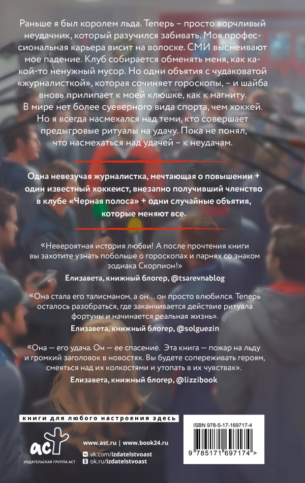Одна невезучая журналистка, мечтающая о повышении + один известный хоккеист, внезапно получивший членство в клубе "Черная полоса" + одни случайные объятия, которые меняют все.