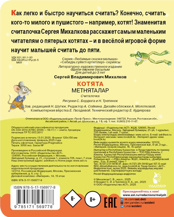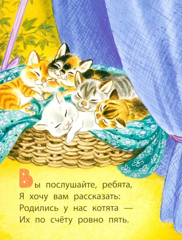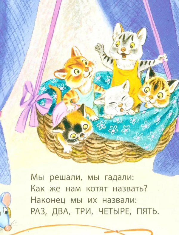 Как легко и быстро научиться считать? Конечно, считать кого-то милого и пушистого – например, котят! Знаменитая считалочка Сергея Михалкова расскажет самым маленьким читателям о пятерых котятах – и в весёлой игровой форме научит малышей считать до пяти.