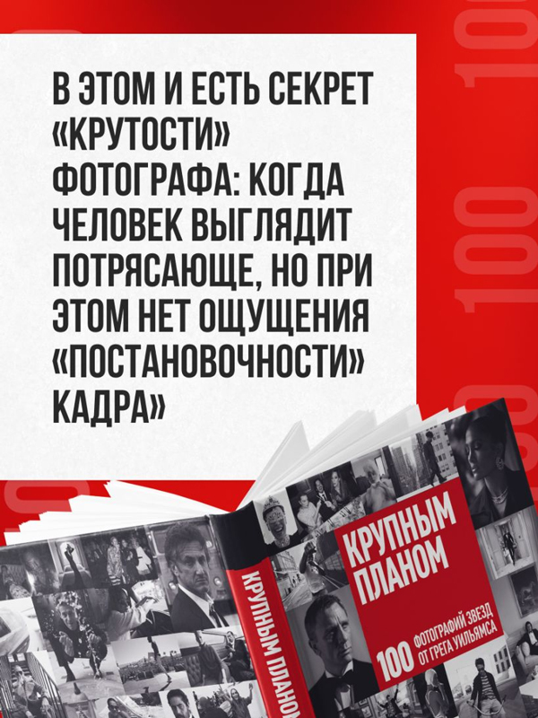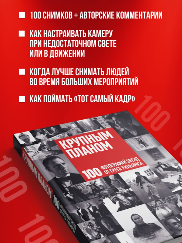 Хотите увидеть, как выглядят великие актеры вне сцены? Эта книга — настоящий backstage, только в фотографии. Легендарный фотограф Грег Уильямс рассказывает, как создаются шедевры, — как настраивать камеру при недостаточном количестве света или в движении, когда лучше снимать людей во время больших мероприятий, как поймать "тот самый кадр".