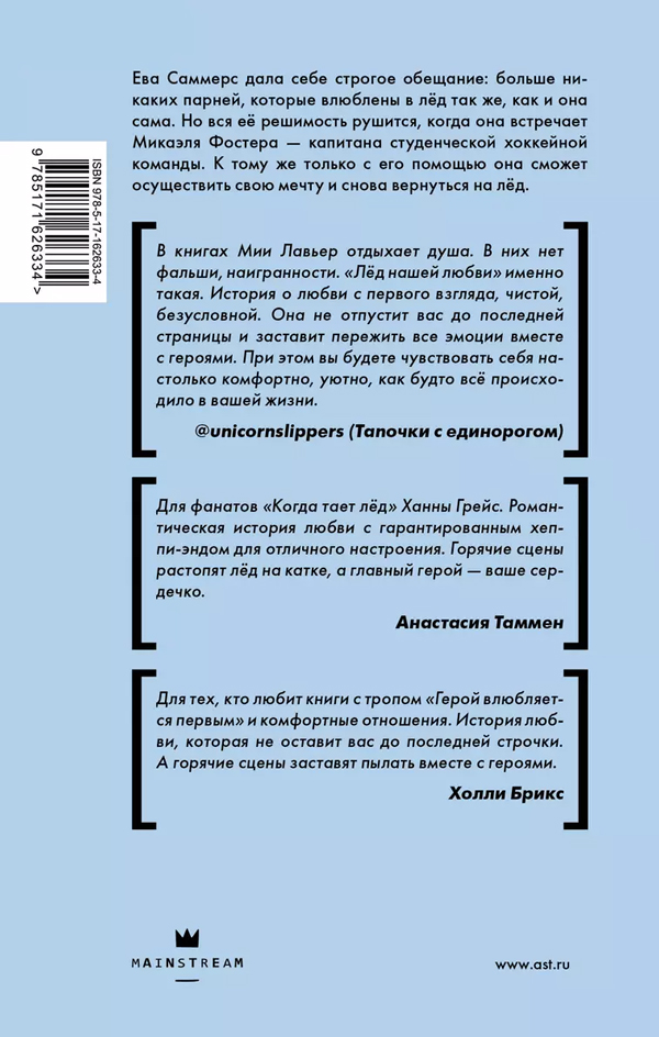 Ева Саммерс дала себе зарок: больше никаких парней, который тоже влюблены в лед. Вся ее решимость тает после всего одной встречи — с очаровательным Микаэлем Фостером, капитаном студенческой команды по хоккею. К тому же новый знакомый обещает, что поможет Еве осуществить мечту и снова вернуться на лед.
