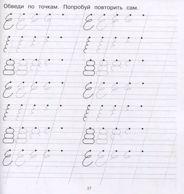 построенными по принципу "от простого — к сложному": ребенку предлагается соединить фигурку по точкам, обвести контур, раскрасить картинку и попробовать нарисовать ее самостоятельно.