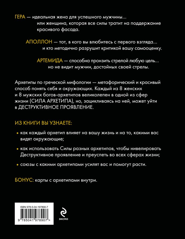 Архетипы по греческой мифологии – метафорический и красивый способ понять себя и окружающих. Каждый из 8 женских и 8 мужских Богов-архетипов великолепен в одной из сфер жизни (СИЛА АРХЕТИПА), но, зацикливаясь на ней, может уйти в ДЕСТРУКТИВНОЕ ПРОЯВЛЕНИЕ.
