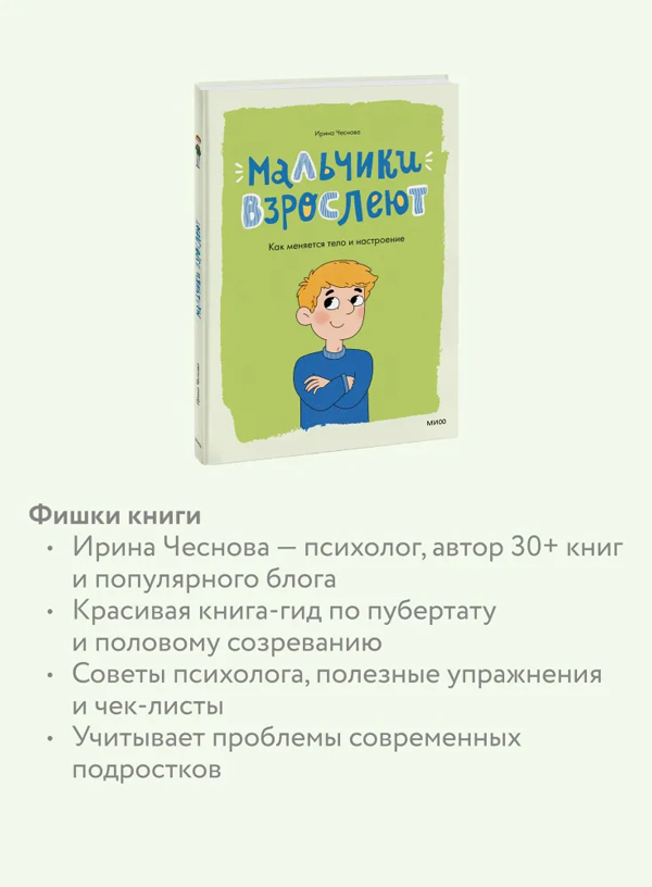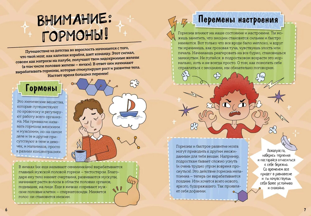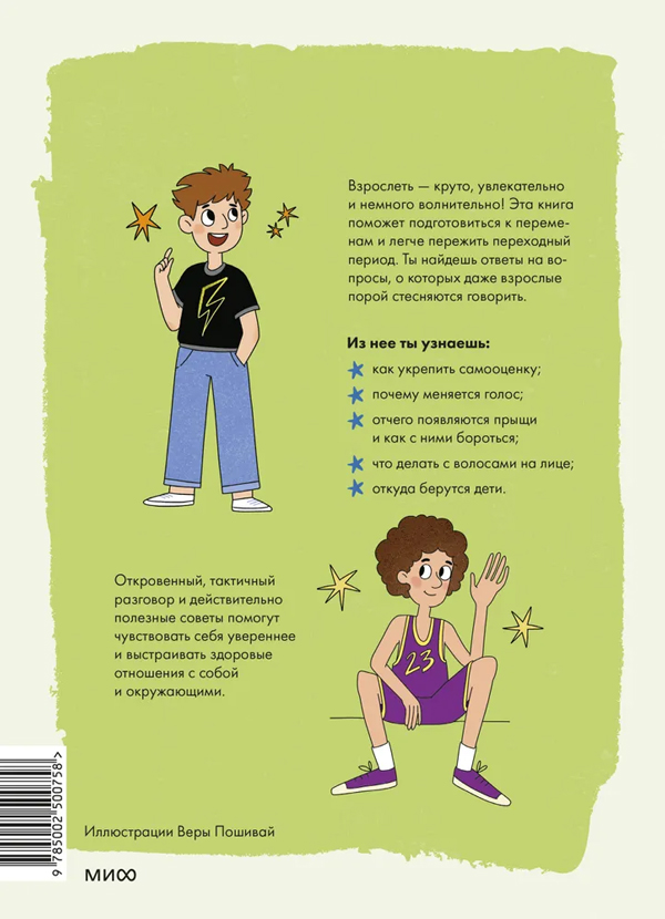 Эта книга затрагивает многие темы, на которые стесняются говорить взрослые. Что такое гормоны, что делать с волосами на лице и почему меняется голос, что такое "эрекция" и как ухаживать за лицом и телом?