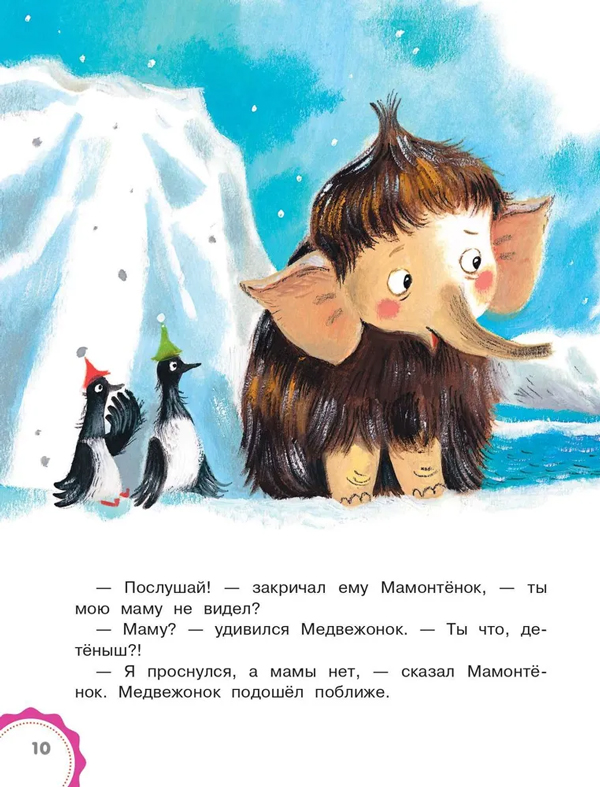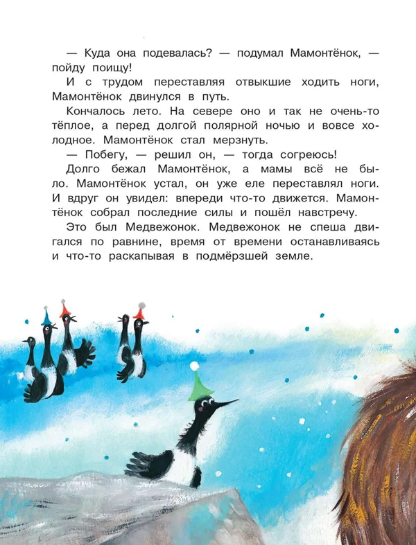 Кроме "Мамонтёнка" писательница придумала и других замечательных героев: Розового Сурка, Кенгурёнка и любопытного Пингвинёнка. С историями этих удивительных зверят вы познакомитесь в нашей книге.
