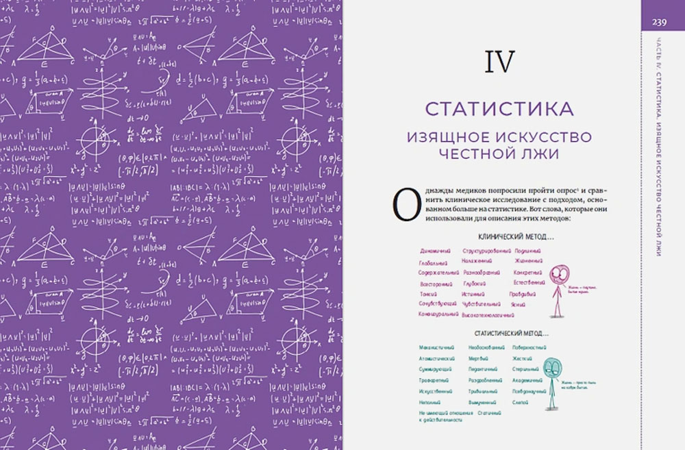 2Д главы книги посвящены самым разнообразным темам: от Коллегии выборщиков и генетики человека до причин не доверять статистике. Каждая из них проиллюстрирована фирменными «дурацкими рисунками» Орлина, передающими его идеи и откровения предельно точно и ясно.