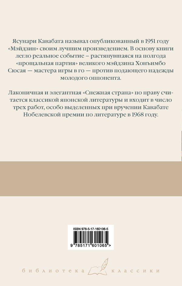 Лаконичная и элегантная "Снежная страна" по праву считается классикой японской литературы и входит в число трех работ, особо выделенных при вручении Кавабате Нобелевской премии по литературе в 1968 году.