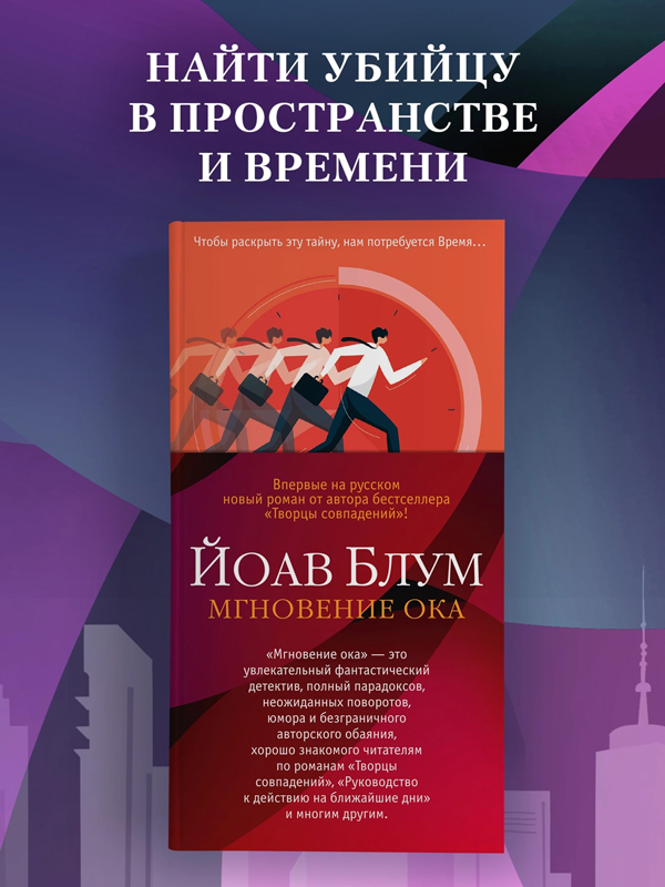 «Мгновение ока» — это увлекательный фантастический детектив, полный парадоксов, неожиданных поворотов, юмора и безграничного авторского обаяния, хорошо знакомого читателям по романам «Творцы совпадений», «Руководство к действию на ближайшие дни» и многим другим.