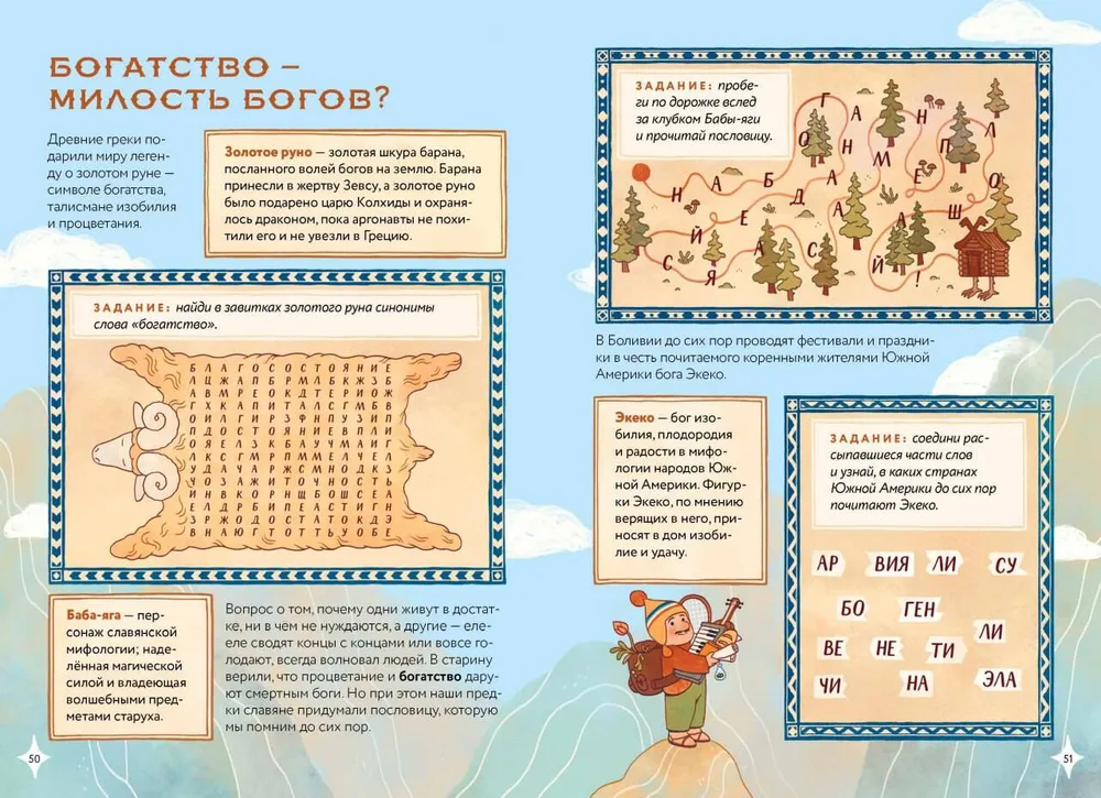 — Множество разноплановых заданий, ребусов и головоломок, которые закрепляют прочитанное.