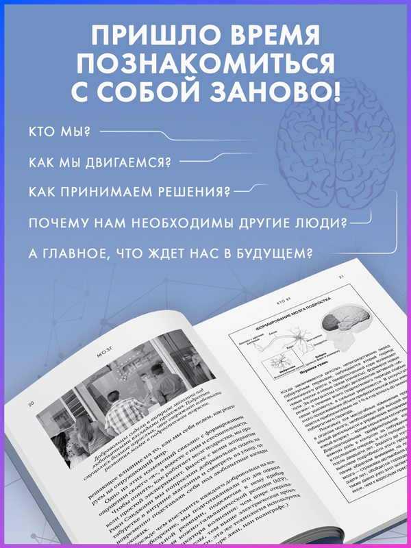Дэвид Иглмен, известный американский нейробиолог, автор мировых бестселлеров, создатель и ведущий международного телесериала «Мозг», приглашает читателей в увлекательное путешествие к истокам их собственной личности, в глубины загадочного органа, в чьи тайны наука начала проникать совсем недавно. Кто мы? Как мы двигаемся? Как принимаем решения? Почему нам необходимы другие люди? А главное, что ждет нас в будущем? Какие открытия и возможности сулит человеку невероятно мощный мозг, которым наделила его эволюция? Не исключено, что уже в недалеком будущем пластичность мозга, на протяжении миллионов лет позволявшая людям адаптироваться к меняющимся условиям окружающего мира, поможет им освободиться от биологической основы и совершить самый большой скачок в истории человечества — переход к эре трансгуманизма.
