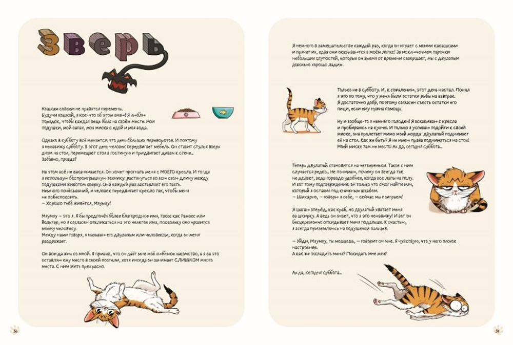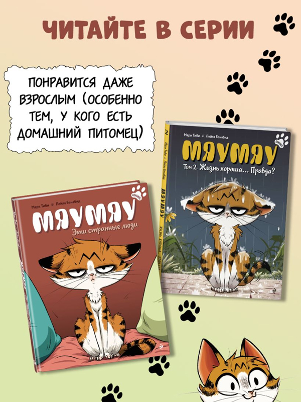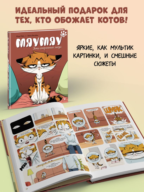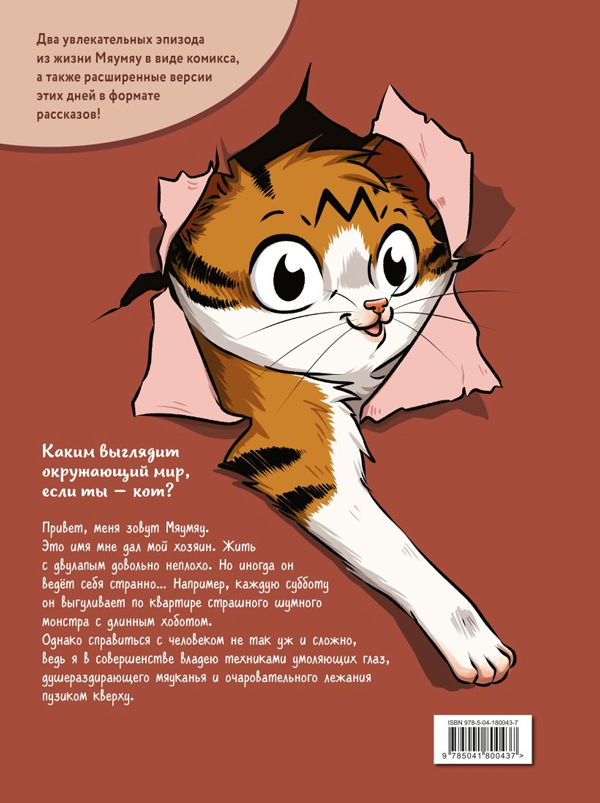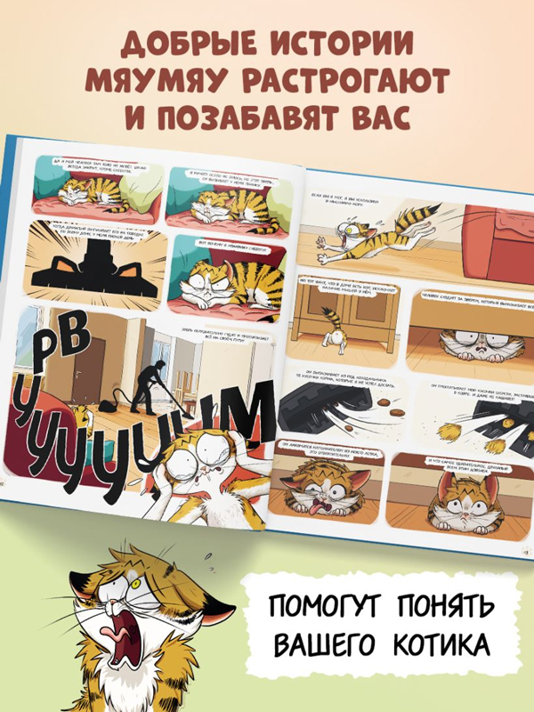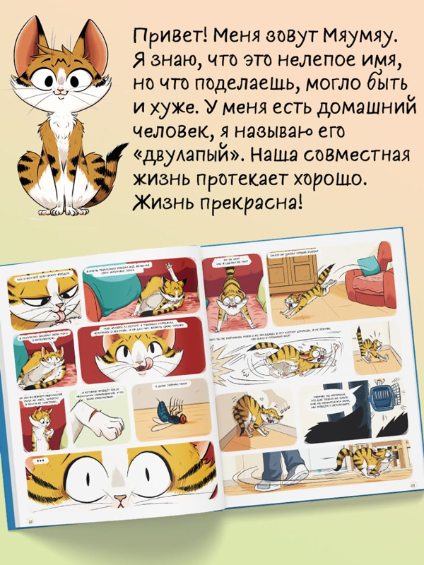 Из небольшого комикса вы узнаете, как повседневные людские заботы, которые вам кажутся пустяковыми, могут сильно озадачить вашего любимца. Истории Мяумяу растрогают и позабавят вас, но также помогут понять вашего котика и найти к нему подход.