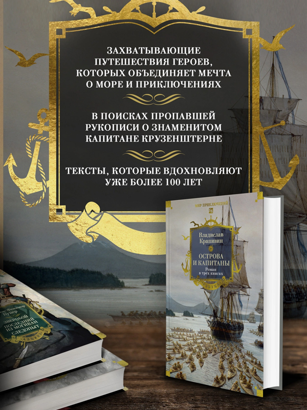 Героев романа-трилогии «Острова и капитаны», взрослеющих, превращающихся в мужчин, объединяет цель — поиски пропавшей рукописи о знаменитом капитане Крузенштерне, первом из русских мореплавателей совершившем кругосветное путешествие. Еще их объединяет мечта. Мечта о море и кораблях, которая ведет их по жизни. Помните слова клятвы в «Двух капитанах»: «Бороться и искать, найти и не сдаваться»? Это и о них тоже, о героях книги Крапивина, — мальчишках с открытым сердцем и светлым огнем в глазах.