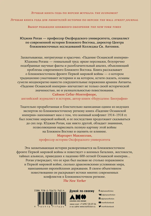 В отличие от окопной войны на Западном фронте, на Ближнем Востоке боевые действия носили динамичный и непредсказуемый характер. Прежде чем военная фортуна повернулась лицом к державам Антанты, турки нанесли им сокрушительные поражения на Галлиполийском полуострове, в Месопотамии и Палестине. Послевоенное урегулирование привело к разделу Османской империи и заложило основу тех непримиримых противоречий, которые по сей день раздирают арабский мир. Эта книга обязательна к прочтению всем, кто хочет понять историю Первой мировой войны и феномен сегодняшнего Ближнего Востока.