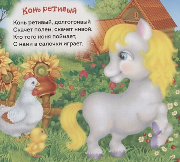 Эта книжка познакомит малыша с замечательными русскими потешками: «Петушок - золотой гребешок», «Птичка», «Кисонька», «Чики-чики-чикалочки», «Дождик», «Ай, дуду, дуду, дуду», «Конь ретивый».