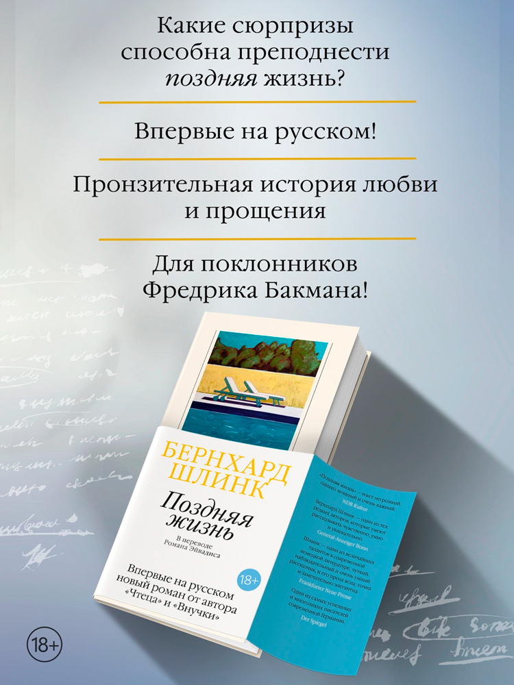 Бернхард Шлинк, современный классик немецкой литературы, лауреат многочисленных литературных премий, автор бестселлеров «Чтец» и «Внучка», написал новый роман — о любви и ее неожиданных лицах и о тихой отваге перед лицом неизбежного.