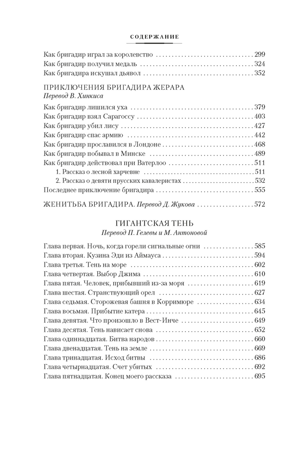 В настоящее издание включены все истории о бригадире Жераре, а также роман «Гигантская тень», входящий в так называемый «наполеоновский цикл» Конан Дойла. Книга сопровождается иллюстрациями английских, американских и французских художников начала XX века.