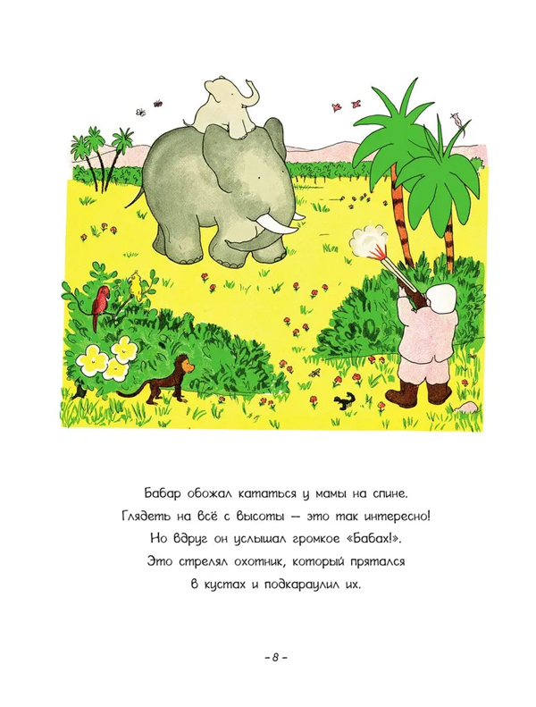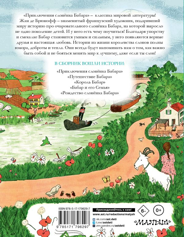 "Приключения слонёнка Бабара" – классика мировой литературы! Жан де Брюнофф – знаменитый французский художник, подаривший миру историю про очаровательного слонёнка Бабара, на которой выросло не одно поколение детей. И у него есть чему поучиться! Благодаря упорству и смекалке Бабар становится умным и сильным, у него появляются верные друзья и настоящая любовь. Истории из жизни королевства слонов полны юмора, доброты и тепла. Они всегда будут напоминать нам о том, как важно быть собой и не бояться менять мир к лучшему, даже если ты слон!
