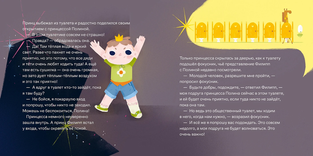 Принц Филипп обожает веселые аттракционы и фокусы, и однажды недалеко от замка раскидывает свои пестрые шатры большая ярмарка, на которой так много интересных развлечений! Но есть одна проблема: как быть, если на ярмарке ему захочется в туалет? Ведь туалеты в общественных местах совершенно не такие замечательные, как у Филиппа в замке...
