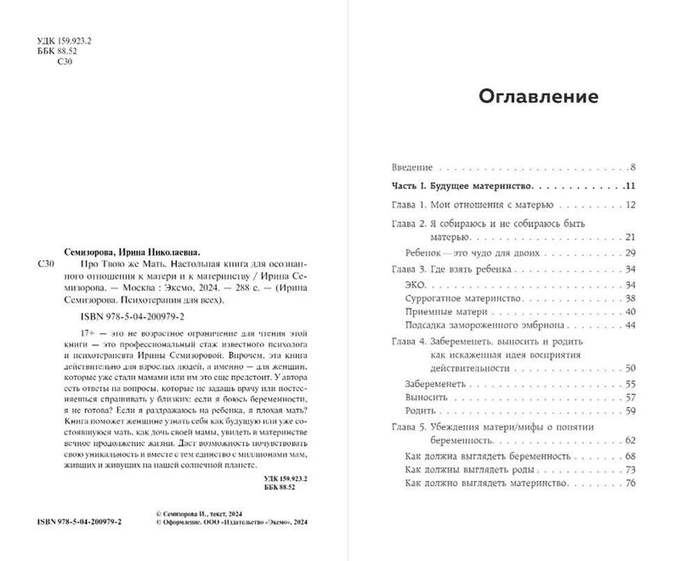 17+ - это не возрастное ограничение для чтение этой книги - это профессиональный стаж известного психолога и психотерапевта Ирины Семизоровой. Впрочем, эта книга действительно для взрослых людей, а именно для женщин, которые уже стали мамами или им это еще предстоит.