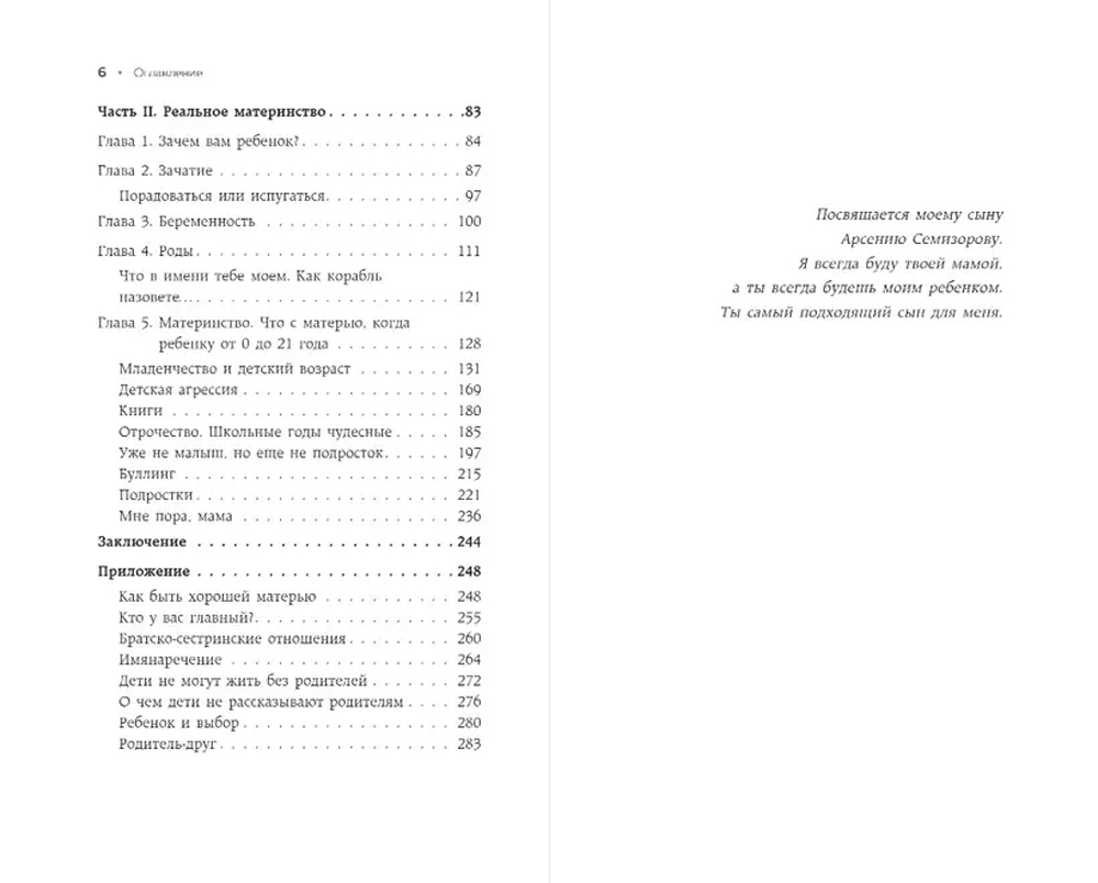 У автора есть ответы на вопросы, которые не задашь врачу или постесняешься спрашивать у близких: если я боюсь беременности, я не готова? Если я раздражаюсь на ребенка, я плохая мать? Книга поможет женщине узнать себя как будущую или уже состоявшуюся мать, как дочь своей мамы, увидеть в материнстве вечное продолжение жизни. Даст возможность почувствовать свою уникальность и вместе с тем единство с миллионами мам, живших и живущих на нашей солнечной планете.