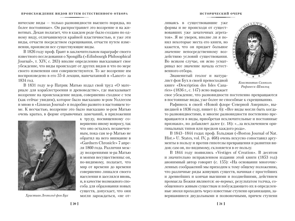 Английский ученый-натуралист, путешественник и естествоиспытатель Чарлз Дарвин на основе многолетних глубоких исследований предлагает естественно-научное объяснение многообразия видов, доказывая их происхождение от общих предков. Ученый одним из первых определил движущие силы эволюционного процесса — изменчивость и естественный отбор. Дарвин подробно и наглядно, на многочисленных примерах показывает, как в живых организмах закрепляются полезные для выживания признаки.