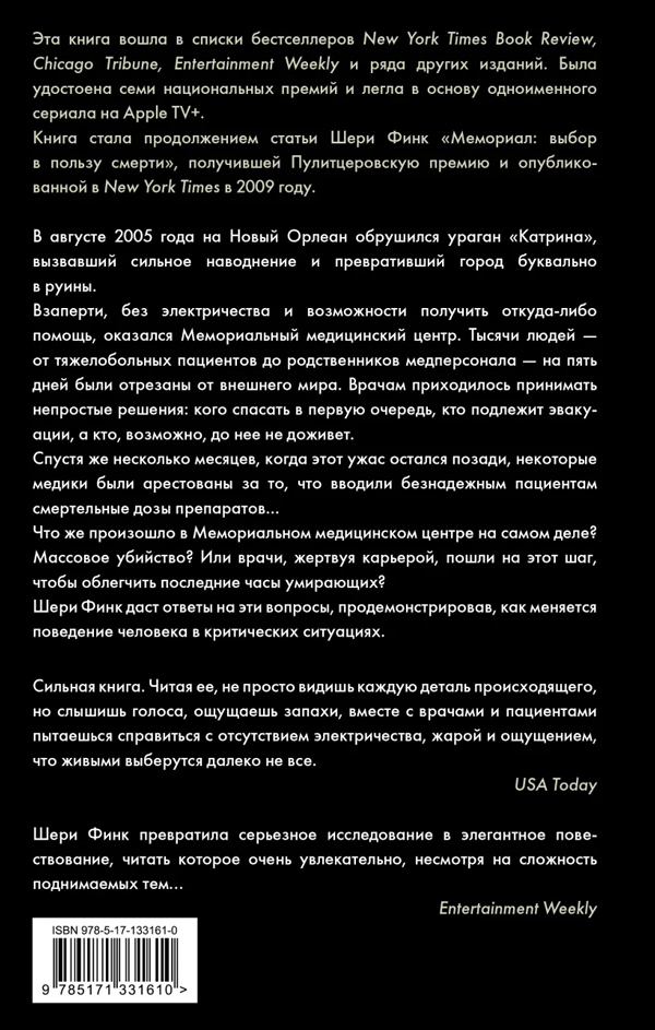 Взаперти, без электричества и возможности получить откуда-либо помощь, оказался Мемориальный медицинский центр. Тысячи людей — от тяжелобольных пациентов до родственников медперсонала — на пять дней были отрезаны от внешнего мира. Врачам приходилось принимать непростые решения: кого спасать в первую очередь, кто подлежит эвакуации, а кто, возможно, до нее не доживет.