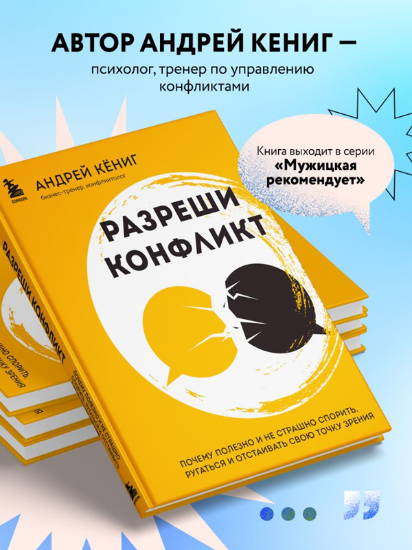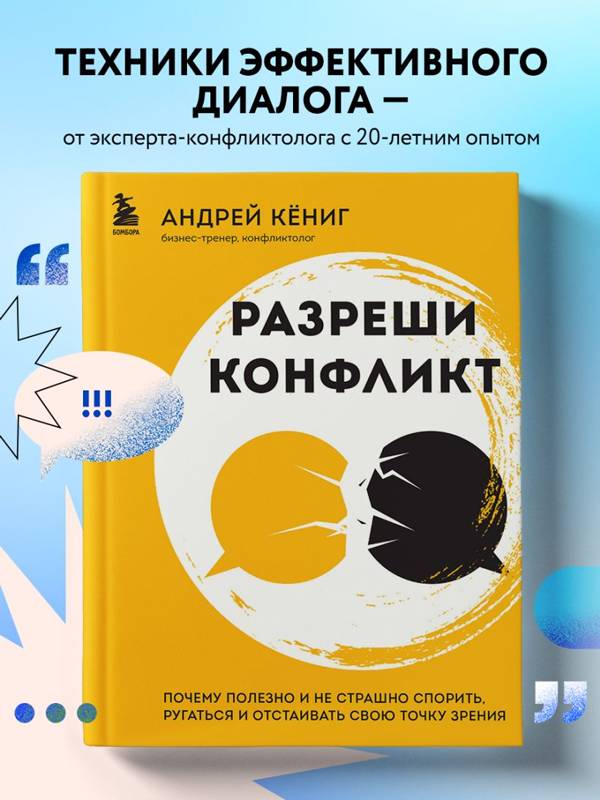 В основу книги лег уникальный тренинг, который автор проводит более десяти лет. На нем Андрей Кёниг объясняет, что конфликт — это выгодное всем участникам коммуникации противостояние сторон. Именно «внутри» конфликта люди наконец начинают откровенно говорить о своих целях, вскрывают блокирующие коммуникацию противоречия, получают шанс начать взаимодействие с чистого листа. Эта книга — увлекательное руководство по тому, как сделать конфликт мощнейшим ресурсом переговоров. Не избегать его, а управлять им и добиваться желаемого.
