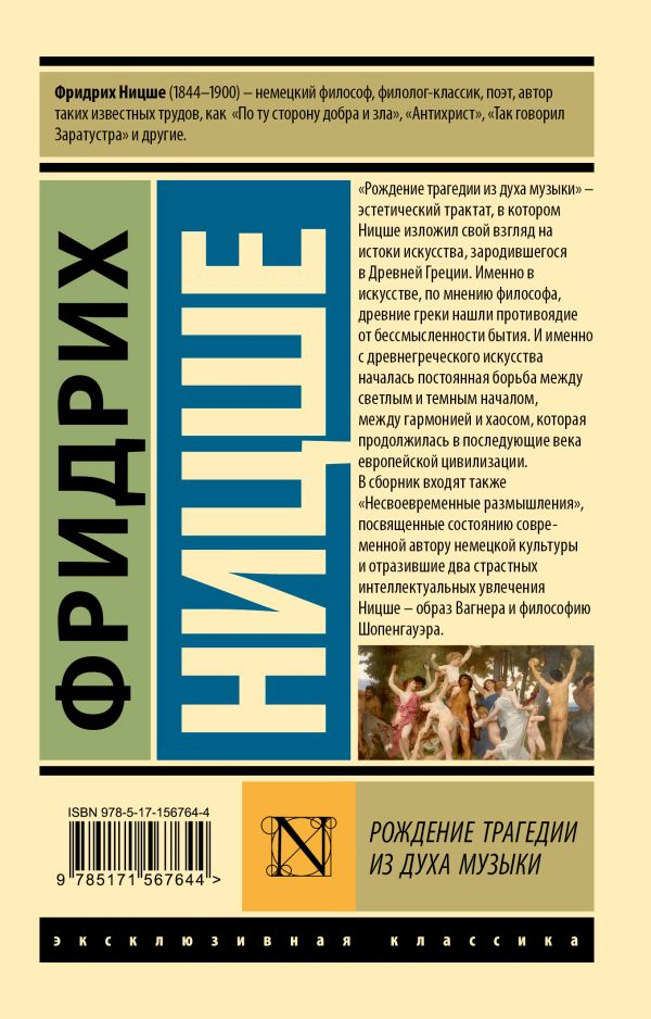 "Рождение трагедии из духа музыки" - эстетический трактат, в котором Ницше изложил свой взгляд на истоки искусства, зародившегося в Древней Греции. Именно в искусстве, по мнению философа, древние греки нашли противоядие от бессмысленности бытия. И именно с древнегреческого искусства началась постоянная борьба между светлым и темным началом, между гармонией и хаосом, которая продолжилась в последующие века европейской цивилизации.