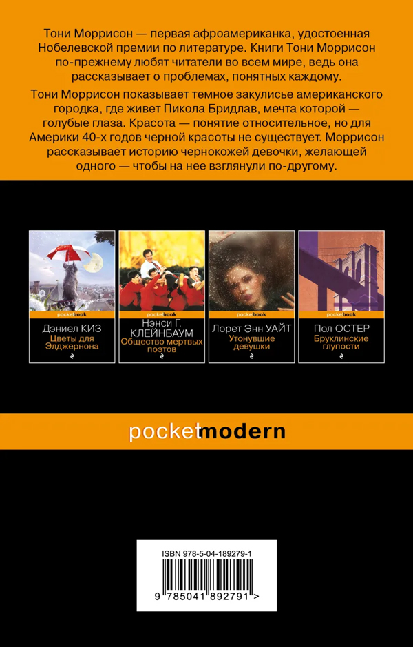 «Самые голубые глаза» — дебютный роман Моррисон, тонкий и пронзительный, бьющий в самое сердце. О красоте, о любви и ненависти, о том, как беспощаден и разрушителен расизм.