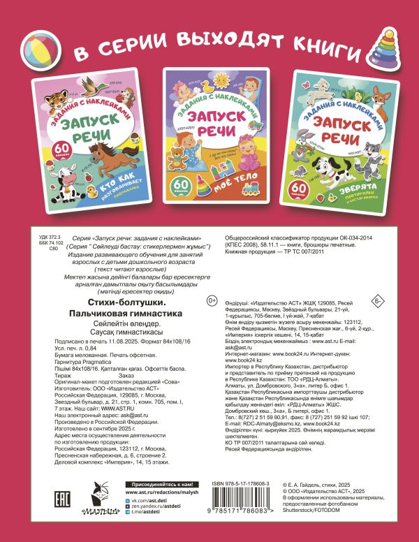 "Стихи-болтушки. Пальчиковая гимнастика" — замечательная книга для раннего речевого развития.